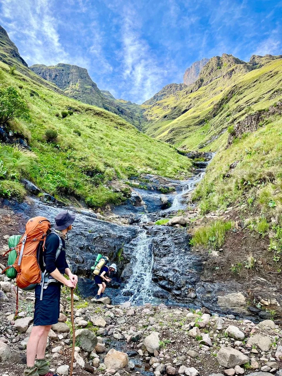 We descend the Mnweni pass into the Mnweni valley with renowned views of the Mnweni cutback, hanging valleys and Pins buttress. We camp near the river at the base. The final day is a 12km meander down the Mnweni valley, ending near some of the local homesteads