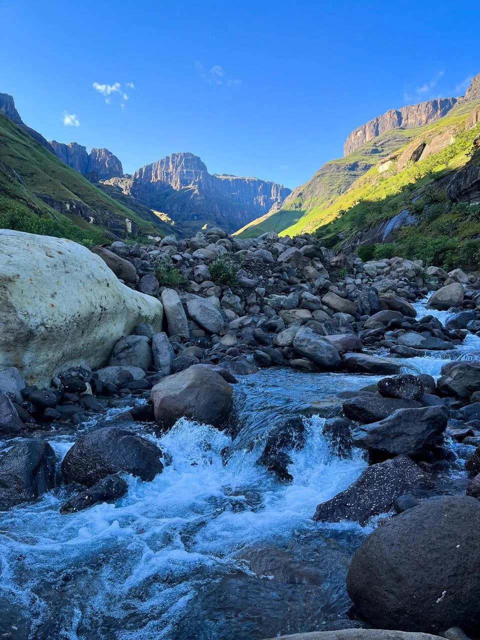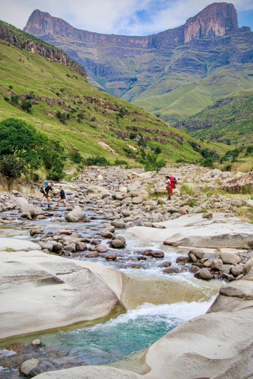 First day is a meander up the Ntonjelana river to the base of rockeries. 6.5km wit beautiful views of the famous Saddle and the Rockeries